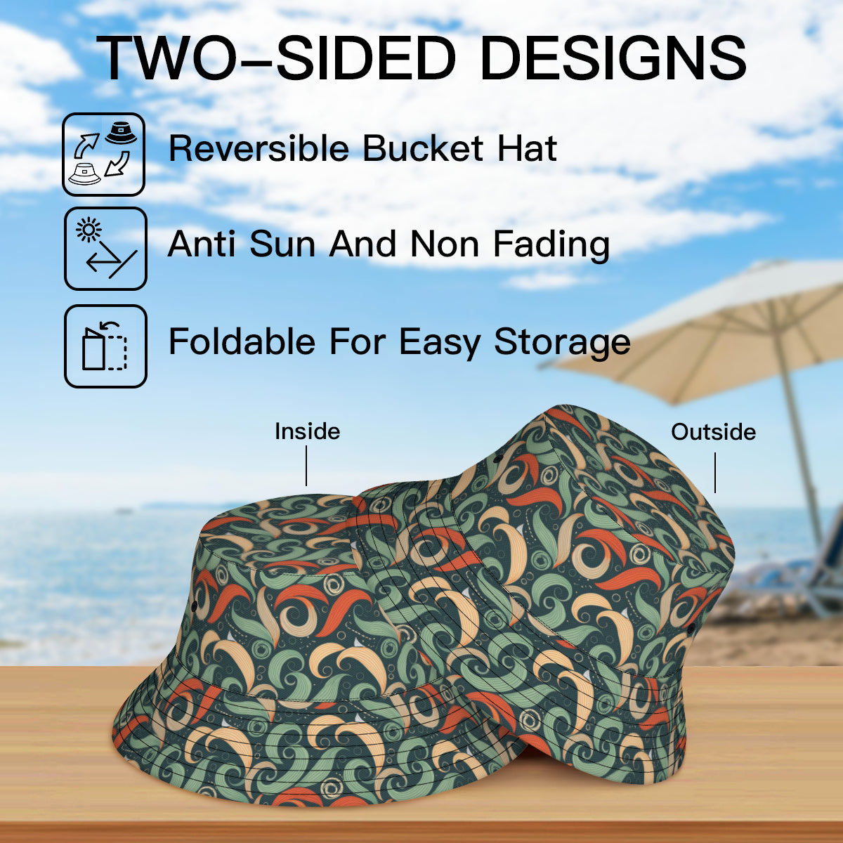 · Material description: Double-layer polyester twill fabric, delicate and skin-friendly, lightweight, breathable and foldable. · Product performance: Stylish double-sided design and printing, allowing you to wear it on both sides. Suitable for most outdoor activities, wear this comfortable hat to protect your skin from UV rays and protect your hair and eyes from the harsh sun. Simple and classic, the shape fits our facial curves and can modify the face shape. It will not be soft or crooked. It looks three-dimensional and stylish from every angle. The edge of the hat brim is designed with reflective strips, which can provide protection in the dark outdoors.