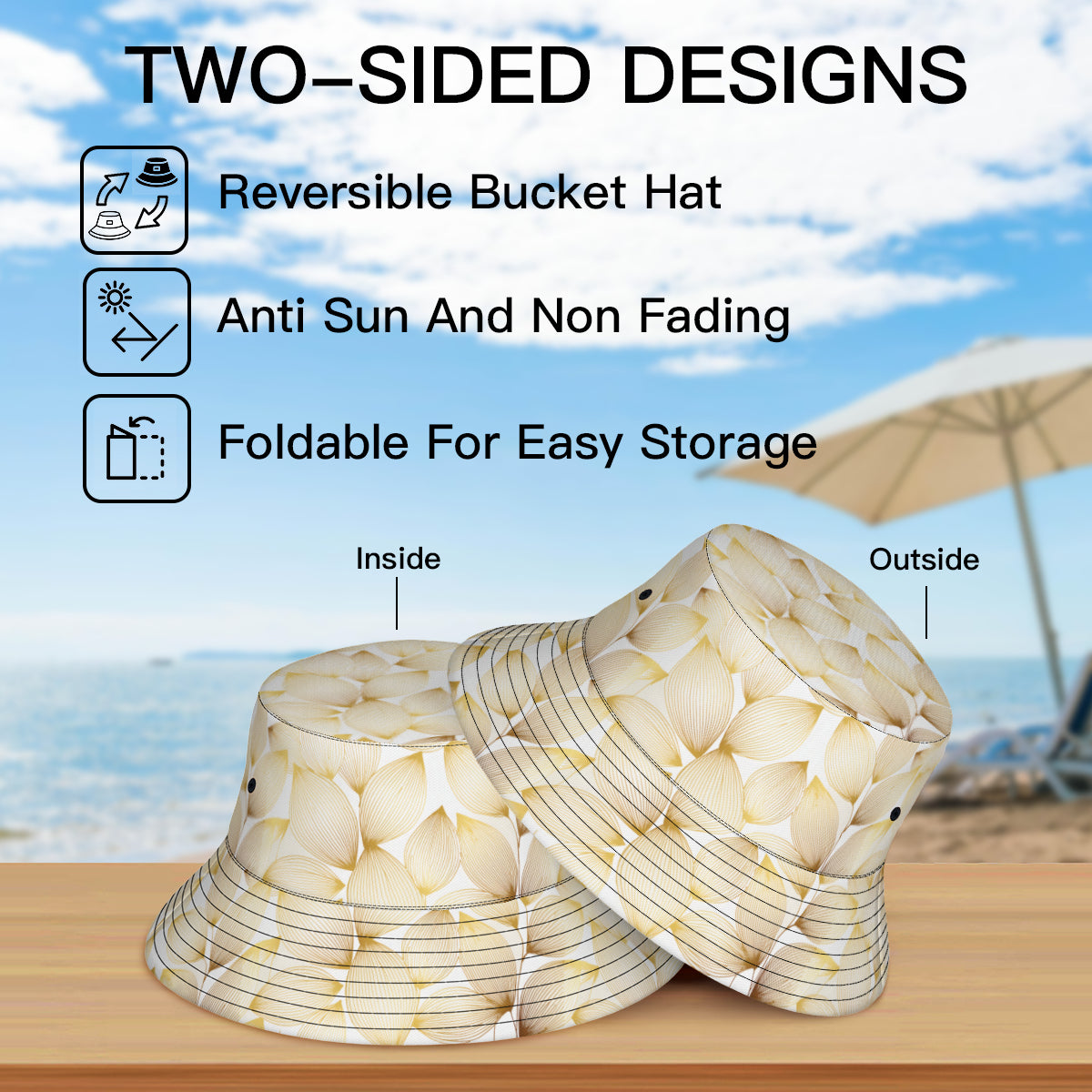 · Material description: Double-layer polyester twill fabric, delicate and skin-friendly, lightweight, breathable and foldable. · Product performance: Stylish double-sided design and printing, allowing you to wear it on both sides. Suitable for most outdoor activities, wear this comfortable hat to protect your skin from UV rays and protect your hair and eyes from the harsh sun. Simple and classic, the shape fits our facial curves and can modify the face shape. It will not be soft or crooked. It looks three-dimensional and stylish from every angle. The edge of the hat brim is designed with reflective strips, which can provide protection in the dark outdoors.