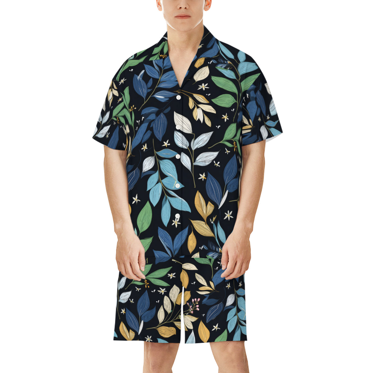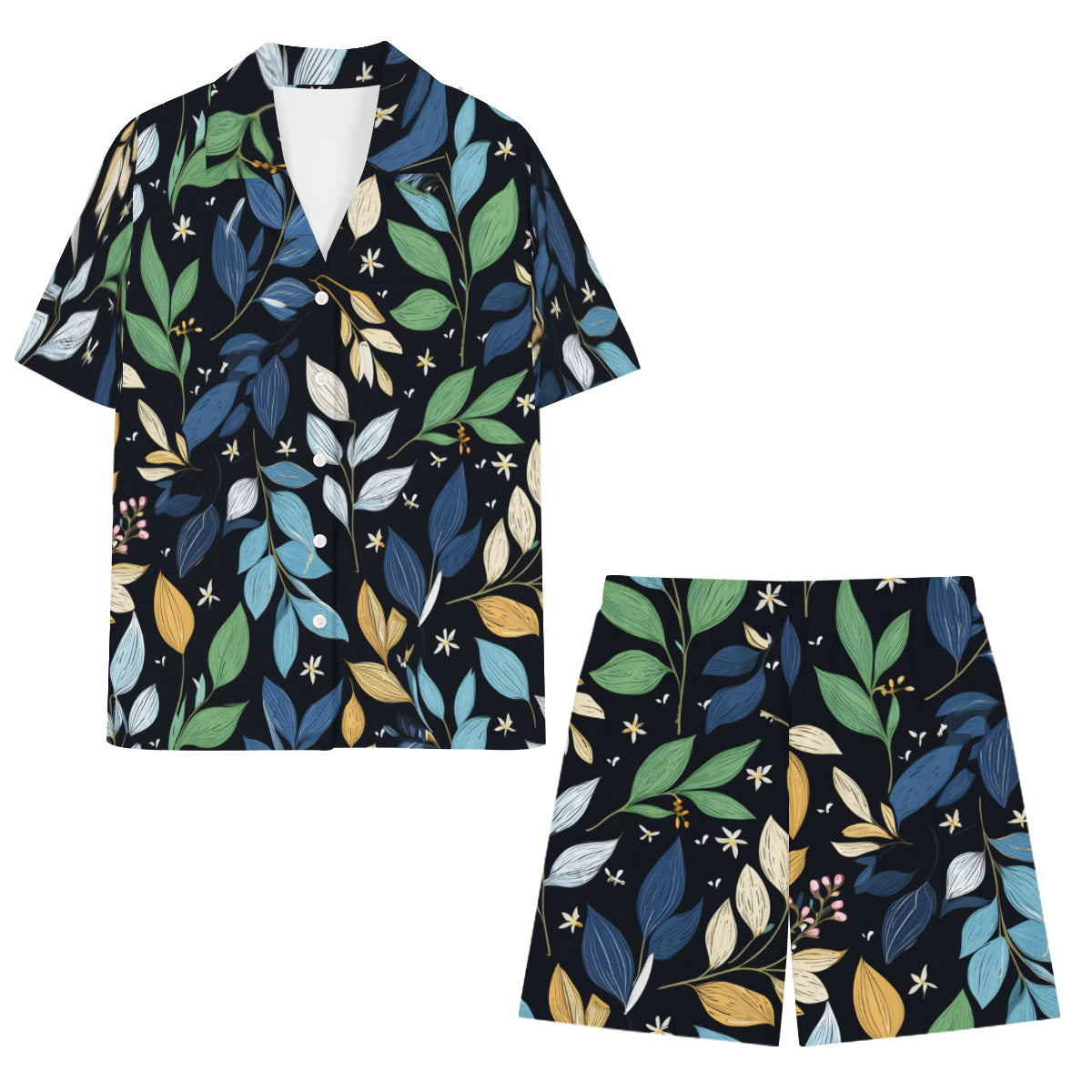 Elegant Leaves Man's Shirt And Short Set
