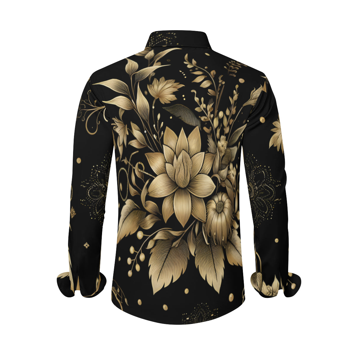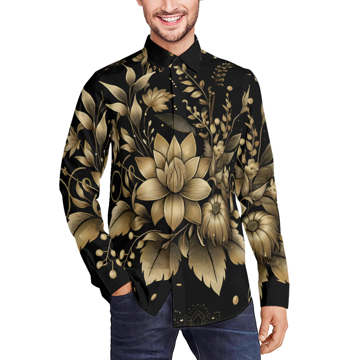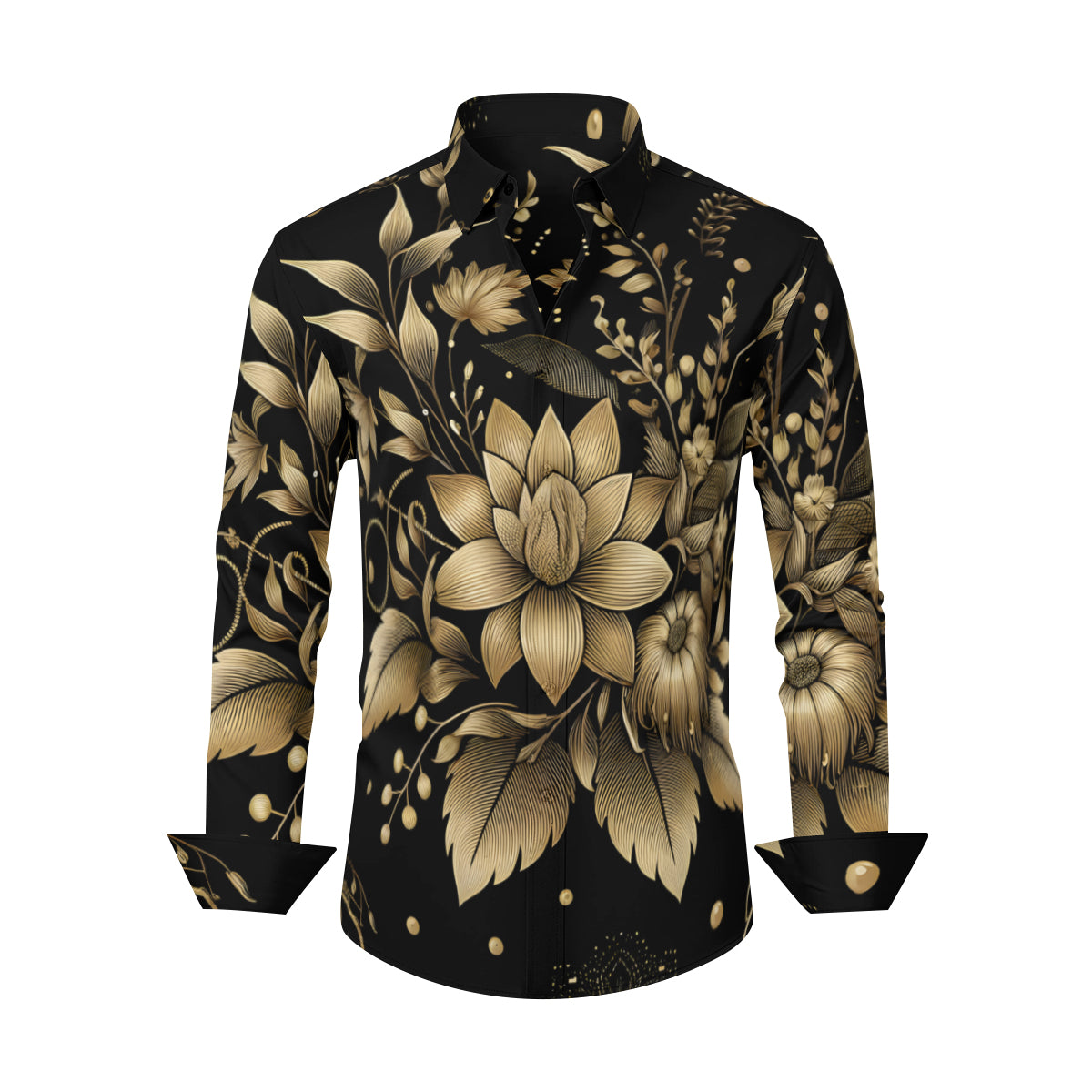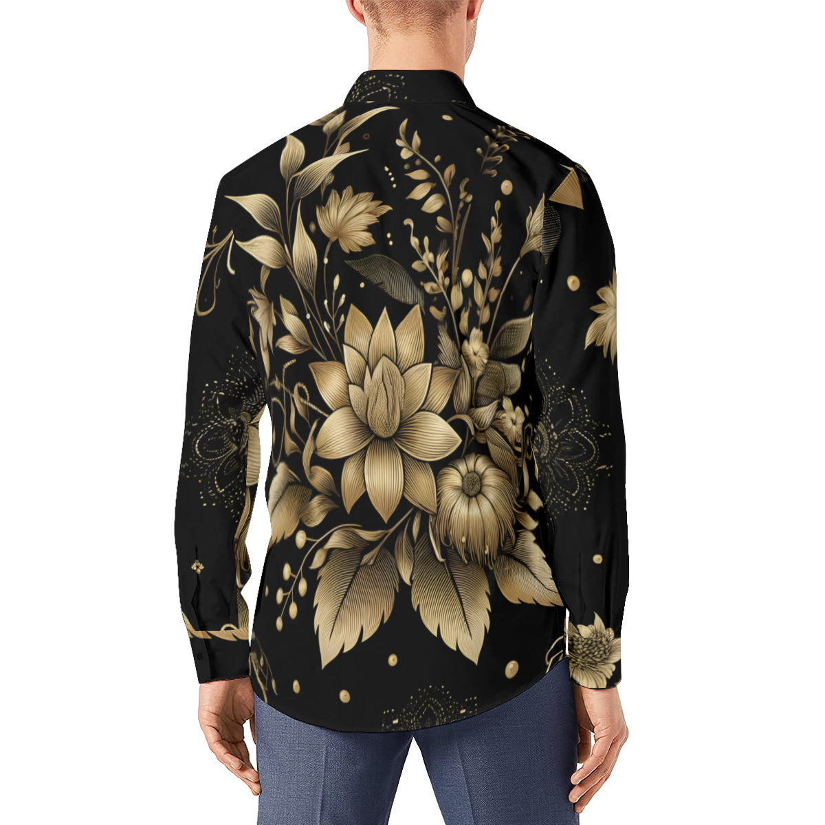 Gold Flowers Men's Classic Long-Sleeved Shirt