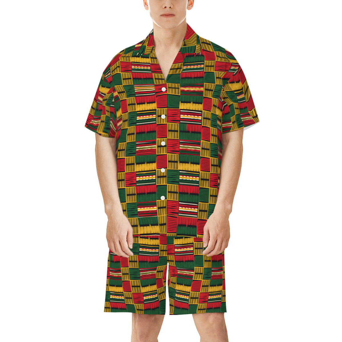 Kente Pattern Man's Shirt And Short Set