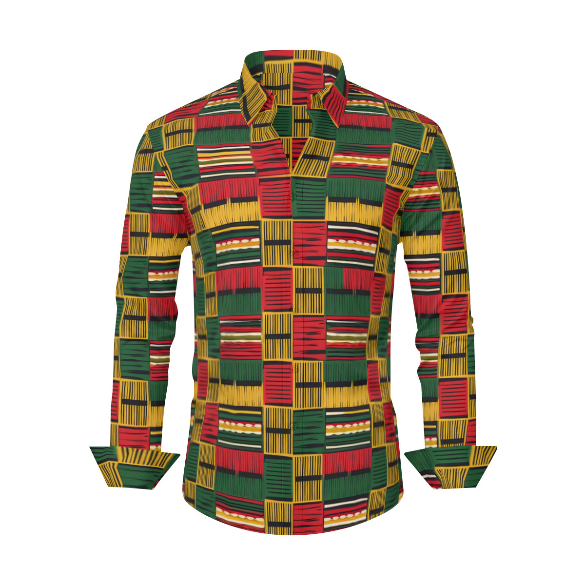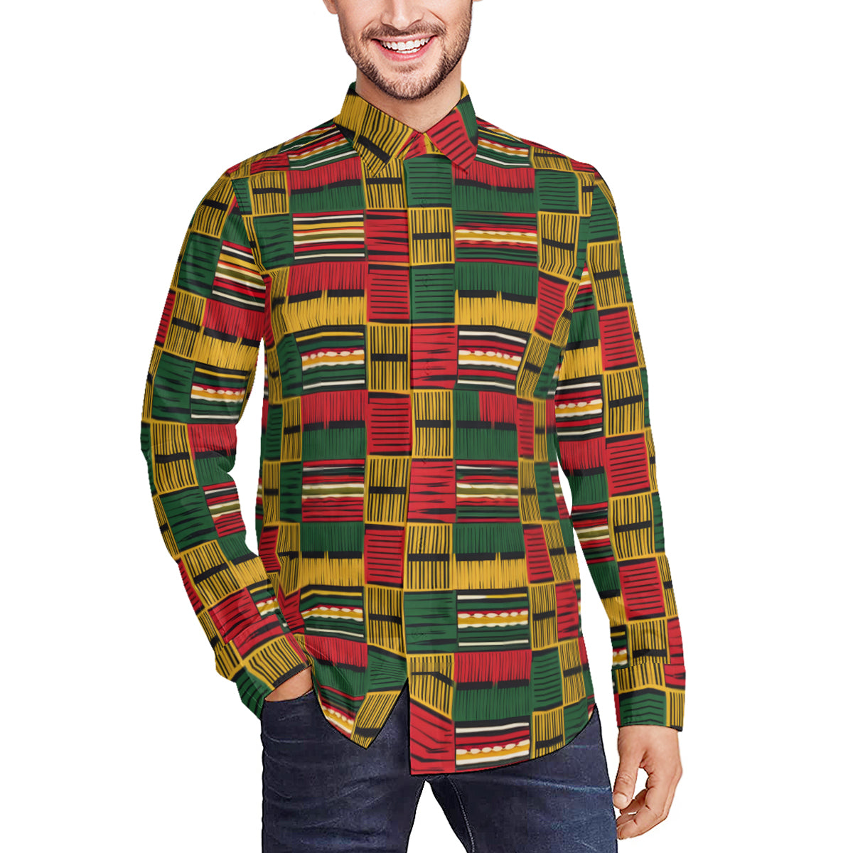 Kente Pattern Men's Classic Long-Sleeved Shirt