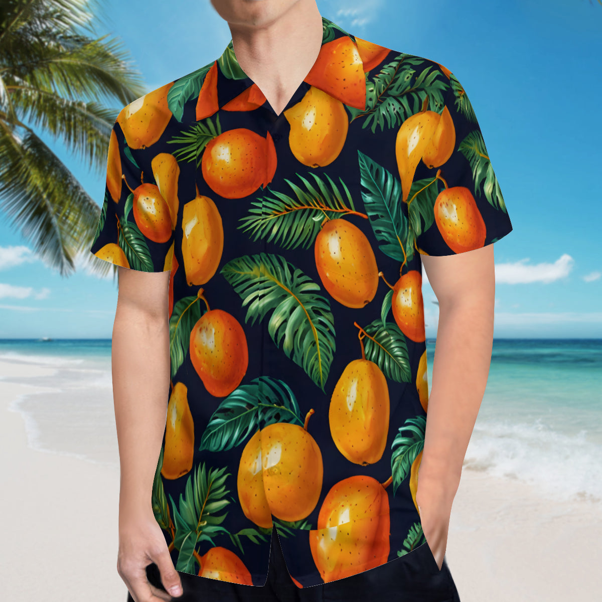 Tropical Mangoes Pattern Men's Casual Short-Sleeved Shirt