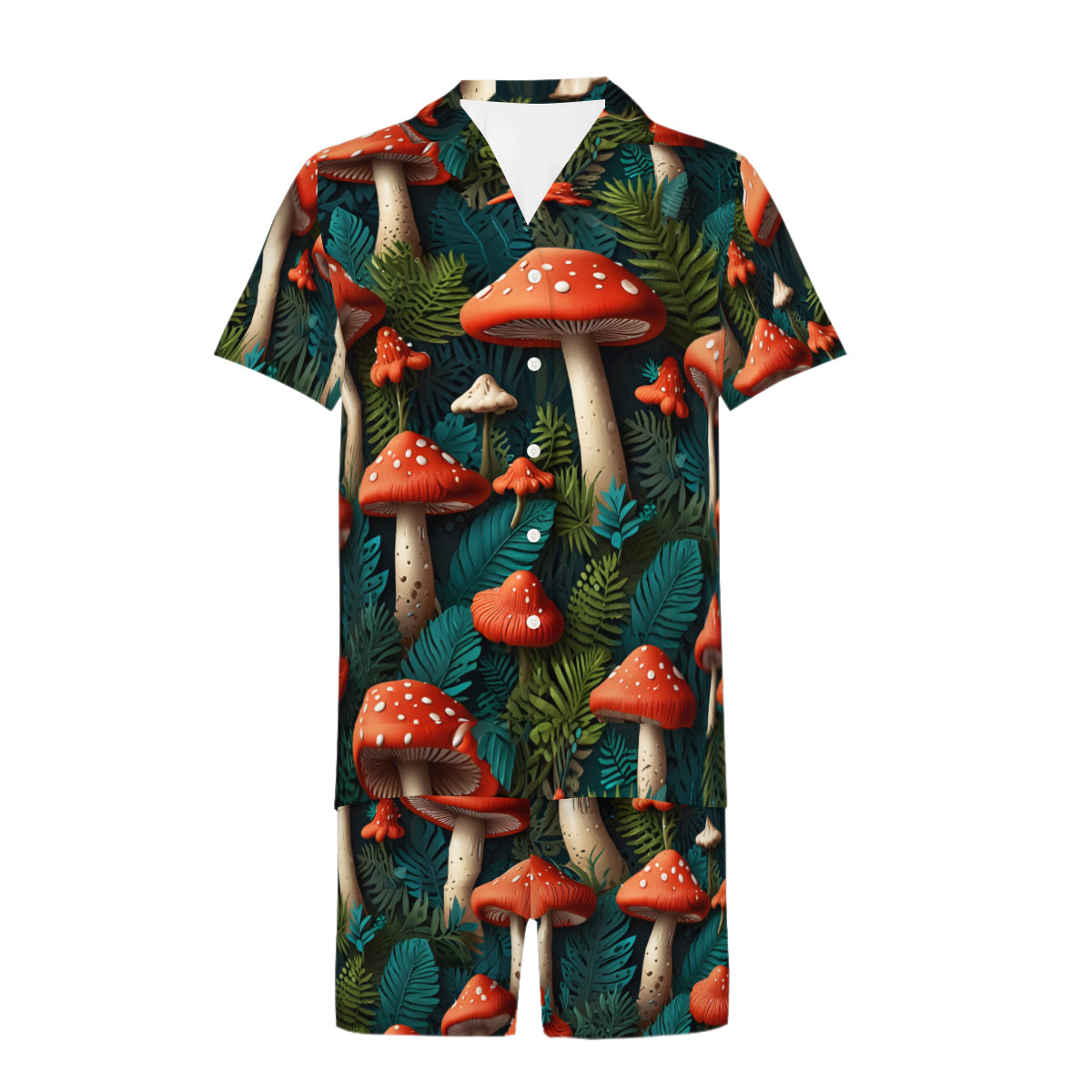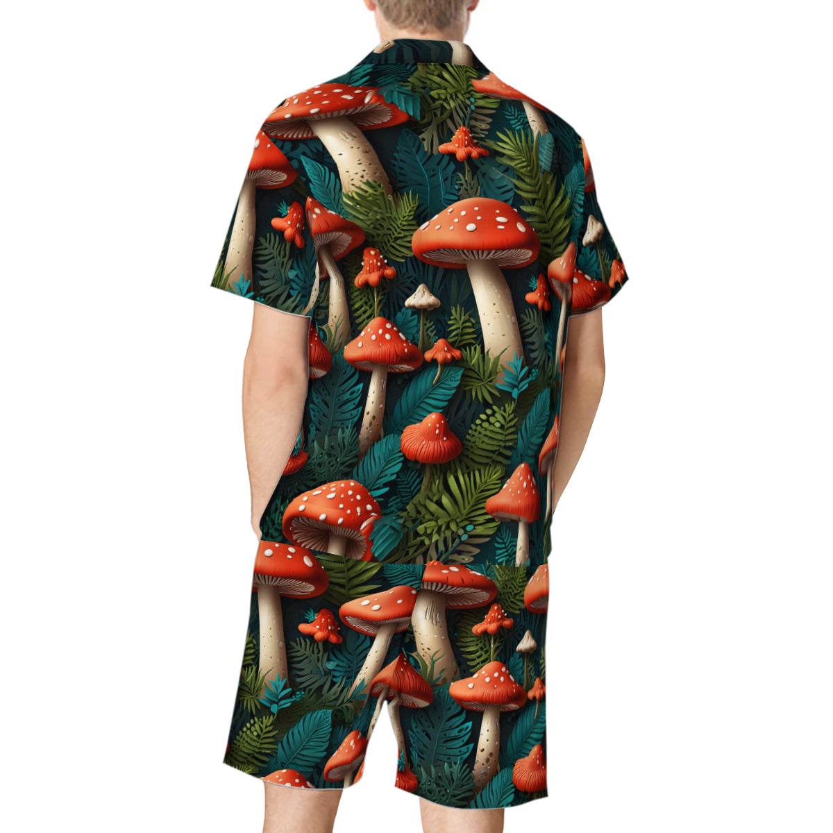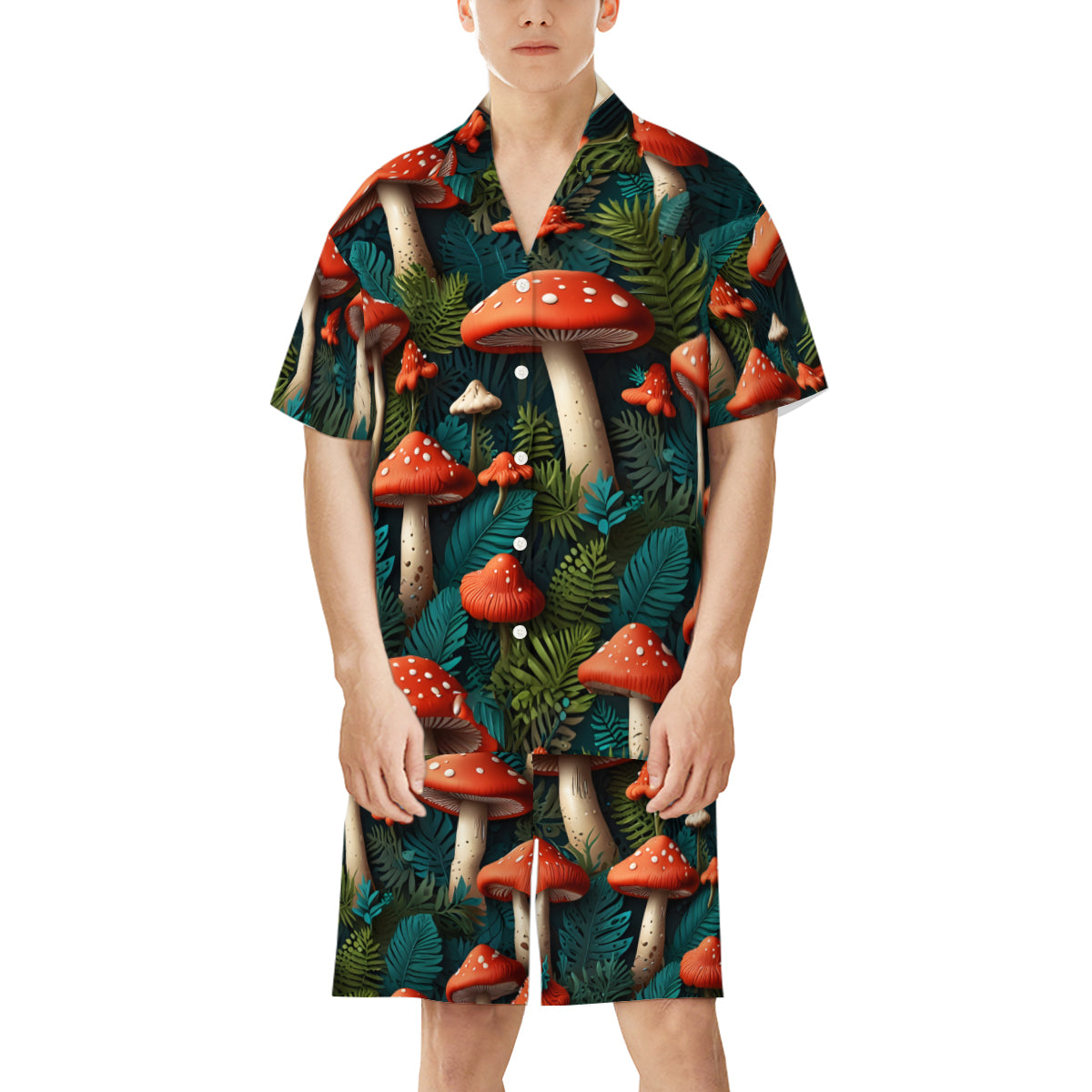 Tropical Mushroom Pattern Man's Shirt And Short Set