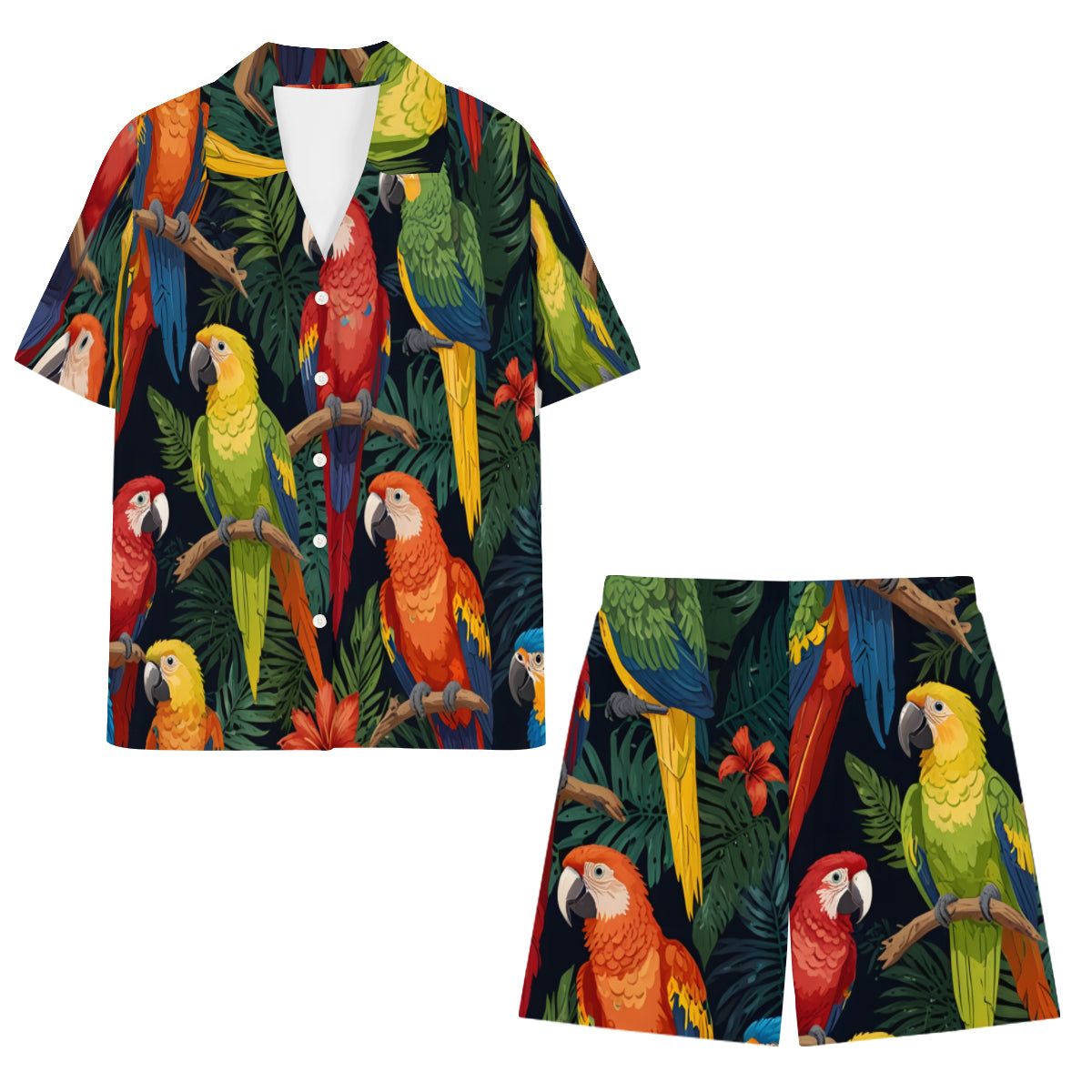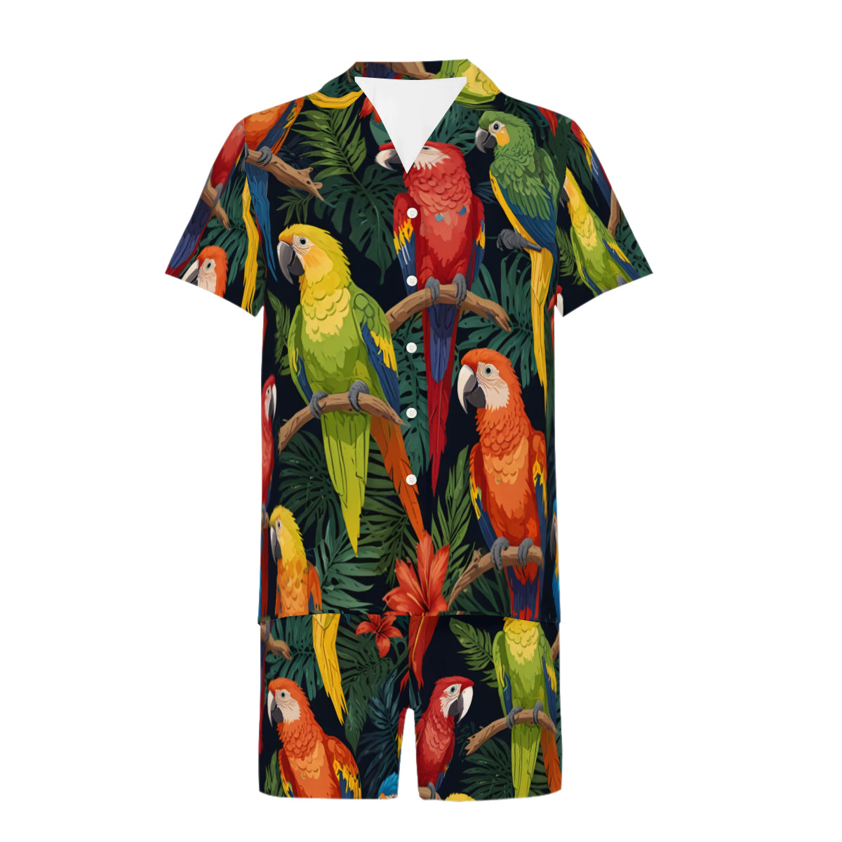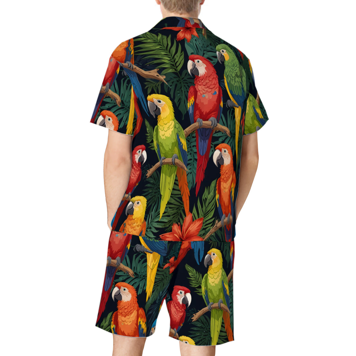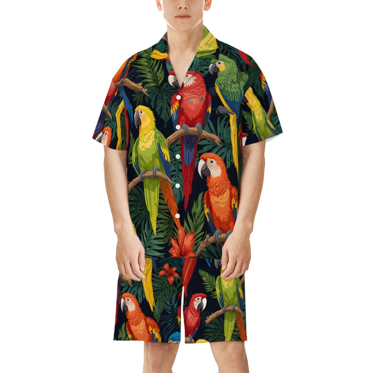 Tropical Parrots Pattern Man's Shirt And Short Set