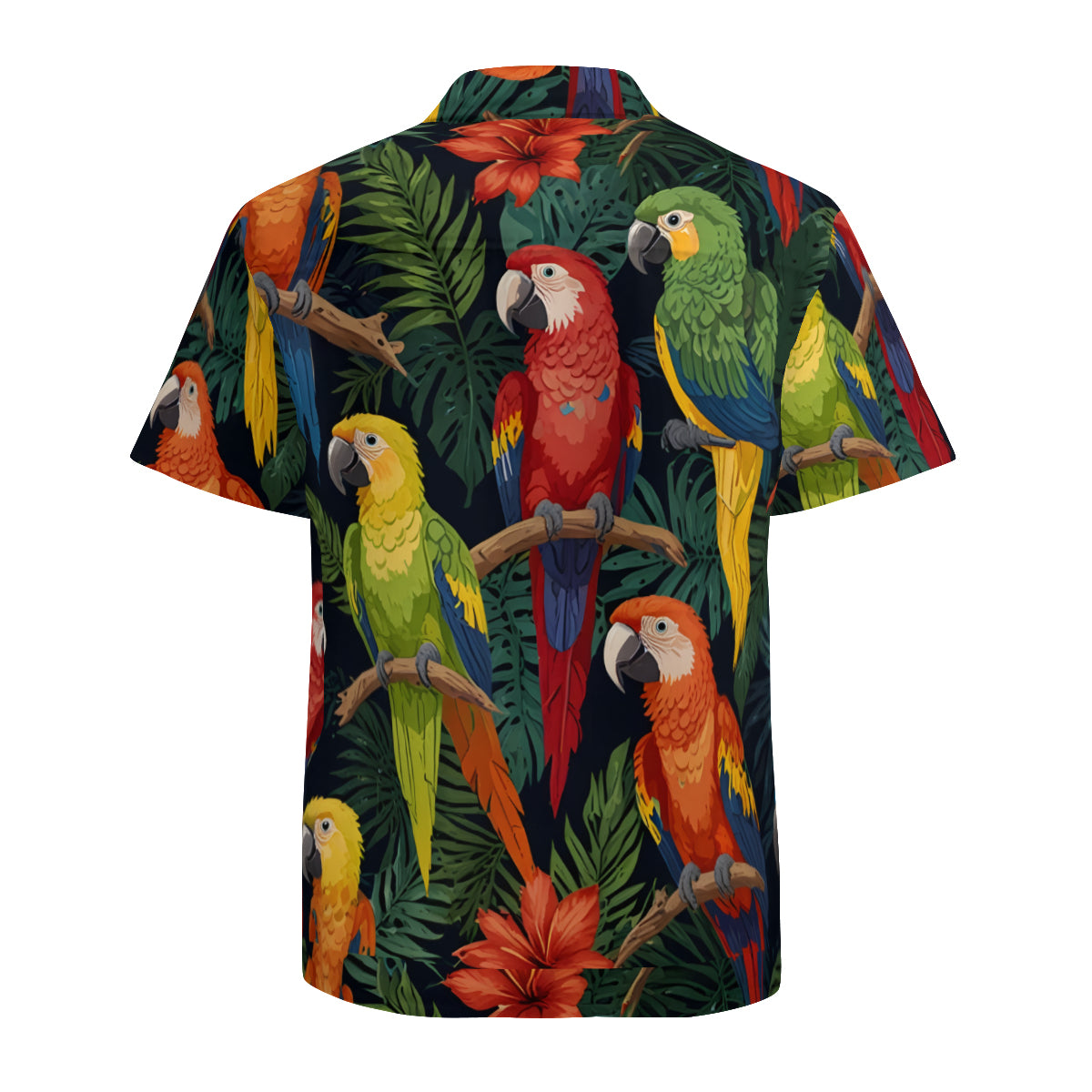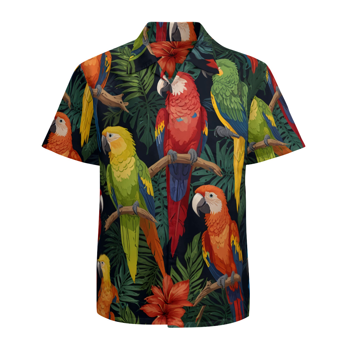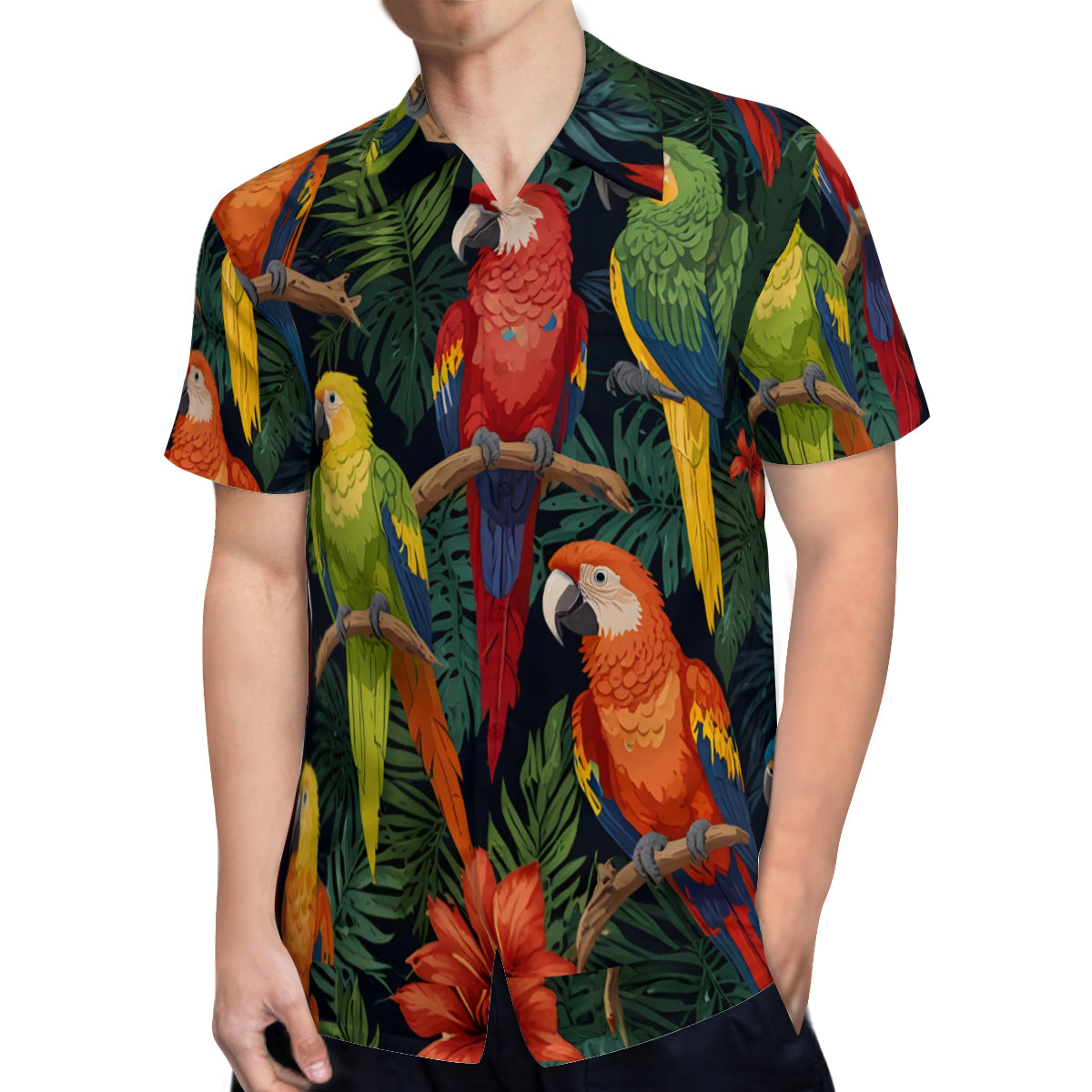 Tropical Parrots Pattern Men's Casual Short-Sleeved Shirt