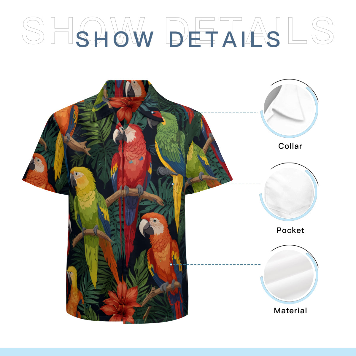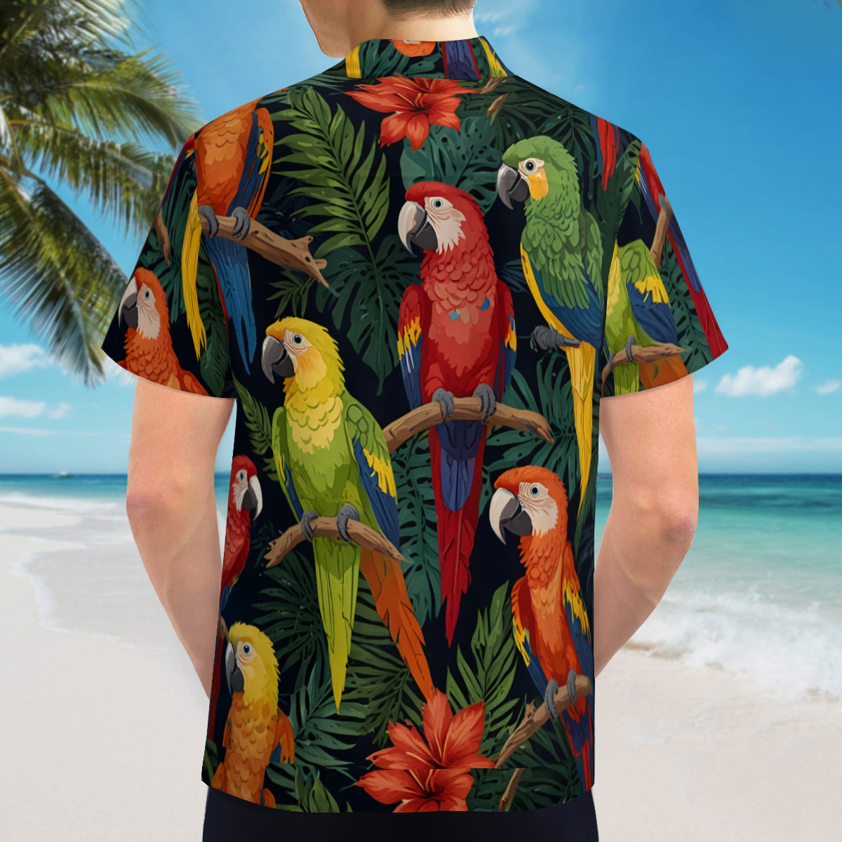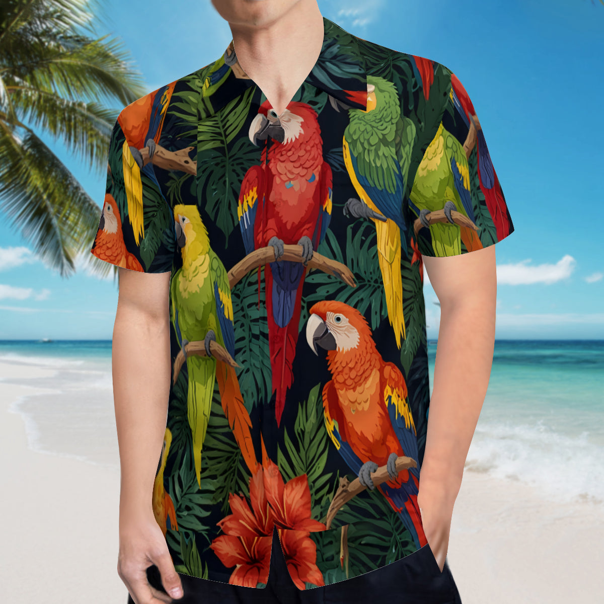 Tropical Parrots Pattern Men's Casual Short-Sleeved Shirt