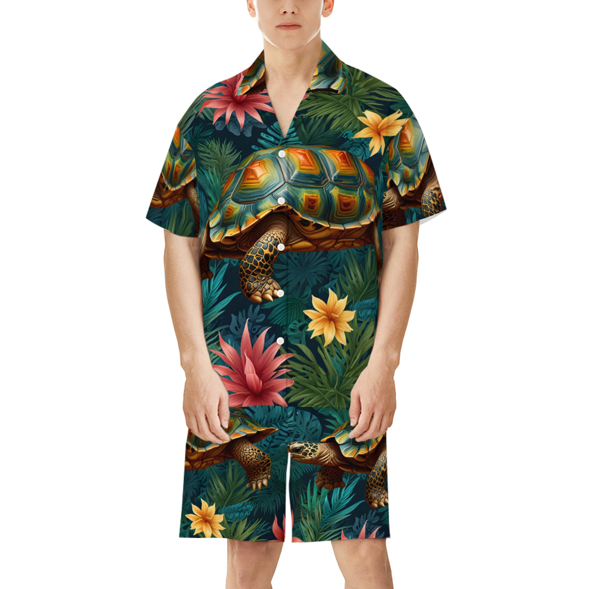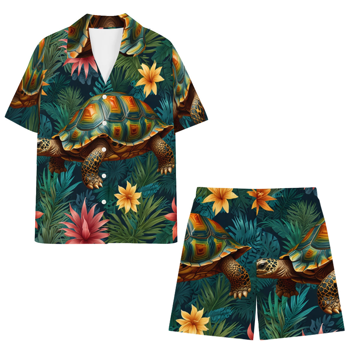 tropical Tortoise Pattern Man's Shirt And Short Set